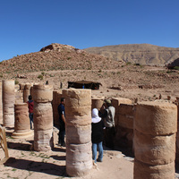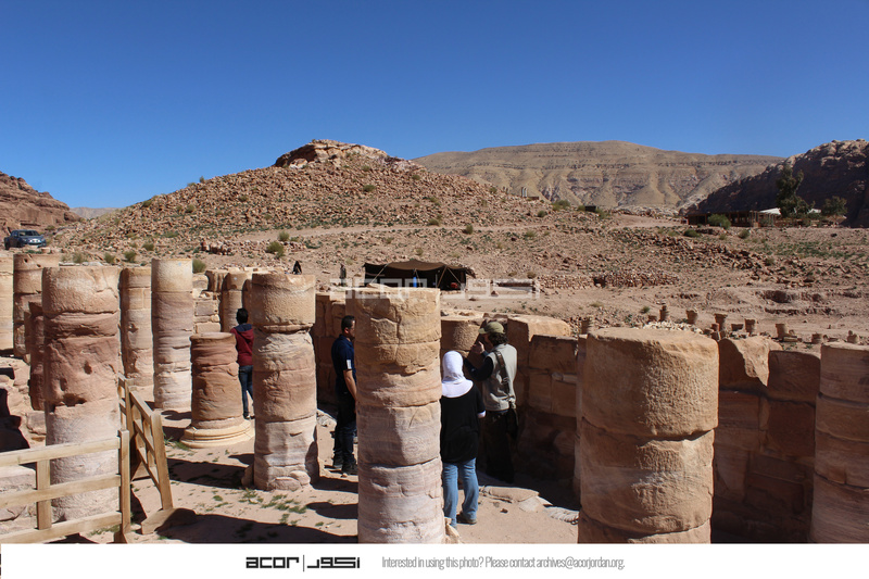 Jordan. Petra, Temple of the Winged Lions, cella, columns in east aisle, Glenn Corbett, Nizar Al Adarbeh, and team member