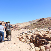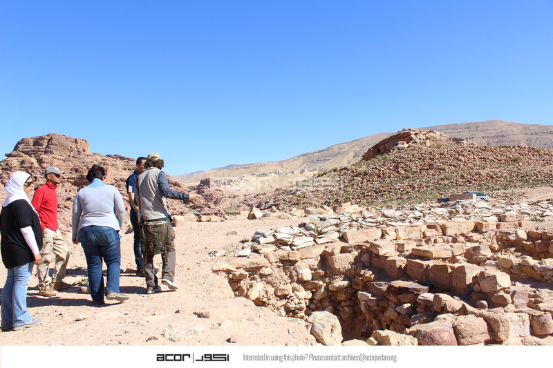 Jordan. Petra, Temple of the Winged Lions, northwest corner of TWL, sandbags, team members